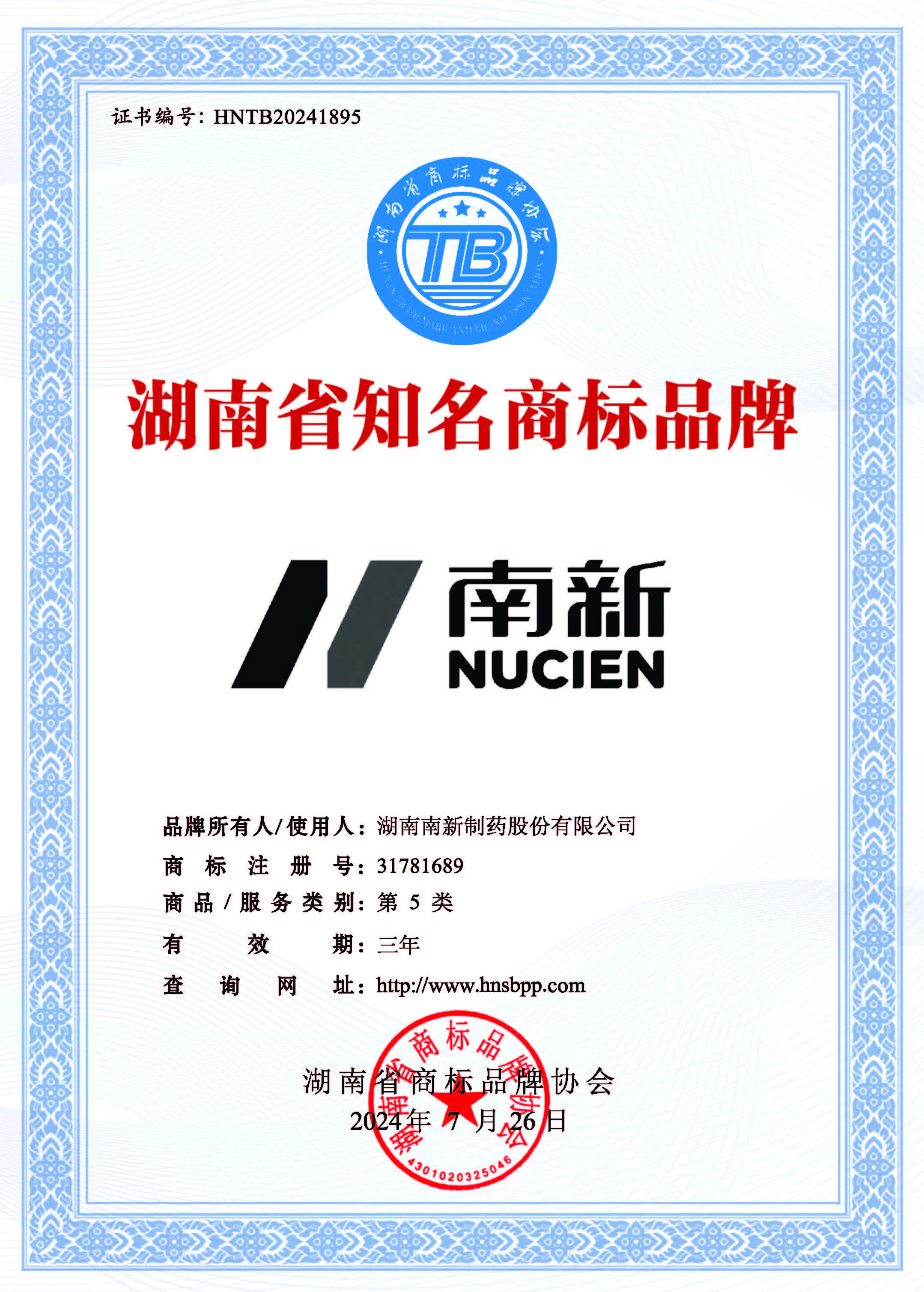 7月26日,湖南省商標(biāo)品牌協(xié)會(huì)發(fā)布《關(guān)于認(rèn)定2024年第一批湖南省知名商標(biāo)品牌的公告》,公告顯示,湖南南新制藥股份有限公司的“南新”商標(biāo)被認(rèn)定為湖南省知名商標(biāo)品牌。